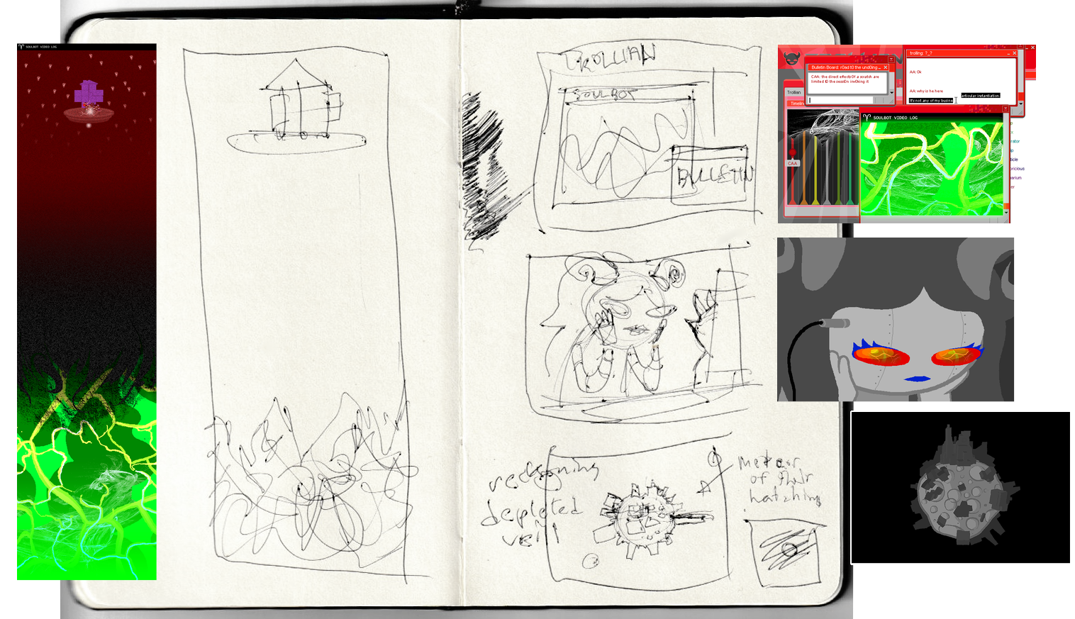 Early characters, worldbuilding notes, room layouts and other bits for Hiveswap.