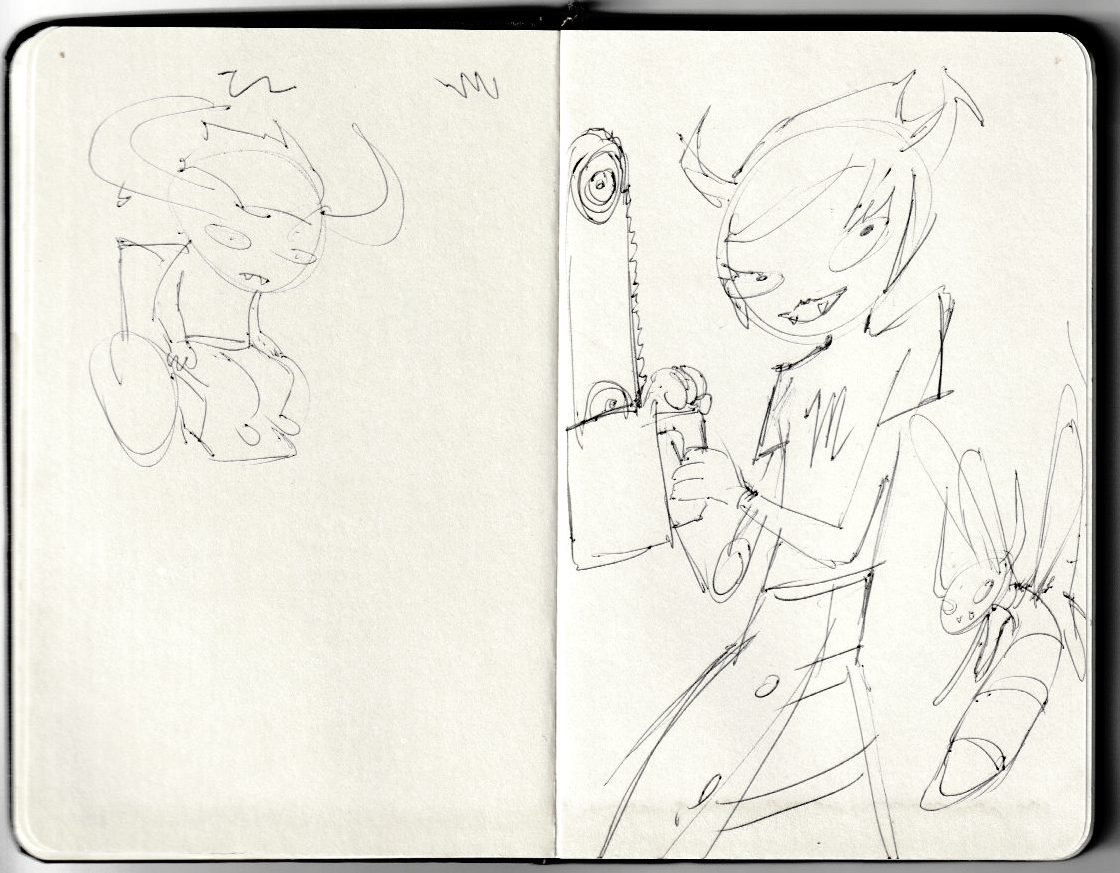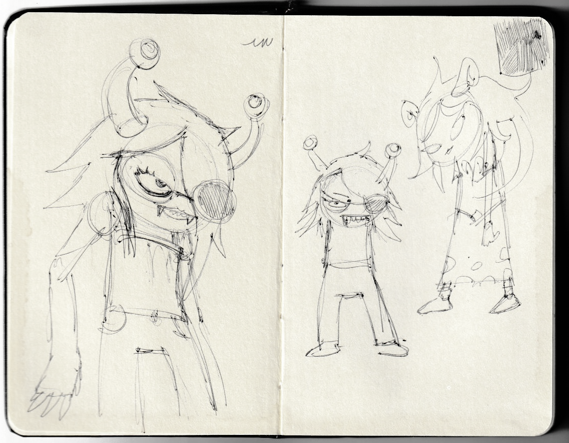 Ink drawings made at an indeterminate date, though Jade's shirt logo was voted on by the fans so it can't be concept art. Based on the artstyle I think it's likely that it was made after 2017, or maybe even in 2025 for practice.