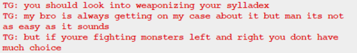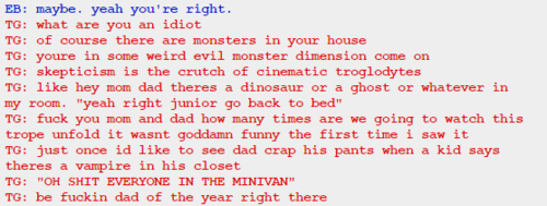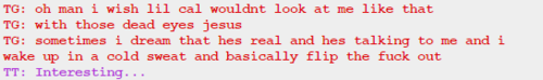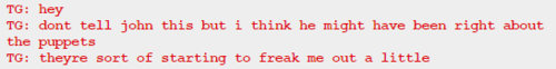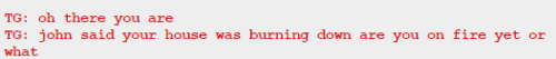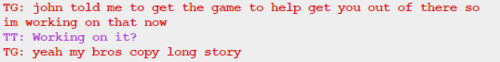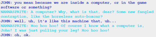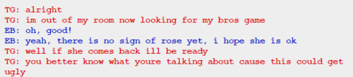 I also got through GG’s pesterlogs and she lied two times, both of them to John. She acted surprised when John told her he had lost her present when she already knew about it. She said she didn’t know what Sburb was, but since she knows about the circumstances in which John will get her present, and he lost it when he had already started playing, she must know at least something about it.