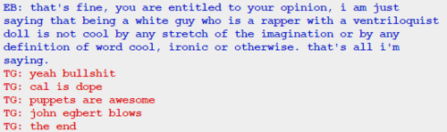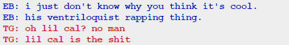 So he raps because his brother raps. And he likes puppets because his brother does. Since his brother is the epitome of cool everything he likes or does must be too by extension. Did I get this right?