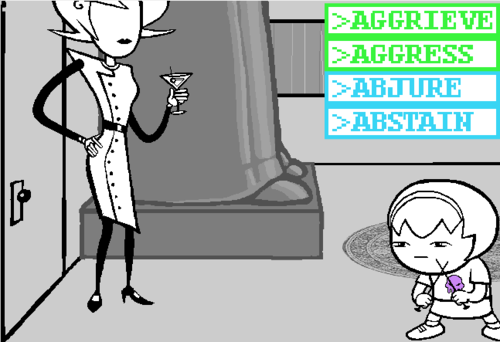 Dave and GG’s conversation comes after the one he had with Rose and is in very stark contrast with it. It felt almost like a battle what with them lashing out and throwing accusations. You could have put the STRIFE! soundtrack under it and it wouldn’t have felt that out of place. I’m not saying I didn’t like it, quite the opposite, only pointing out the differences.