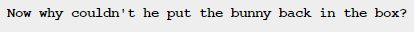 John. THE BUNNY. Where is it?
