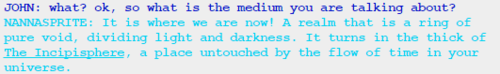 We are in a void. That divides light from darkness. At the end of the medium there is the Incipisphere, a place where time doesn’t flow, like… eternal. Or time as we conceive it, anyway.