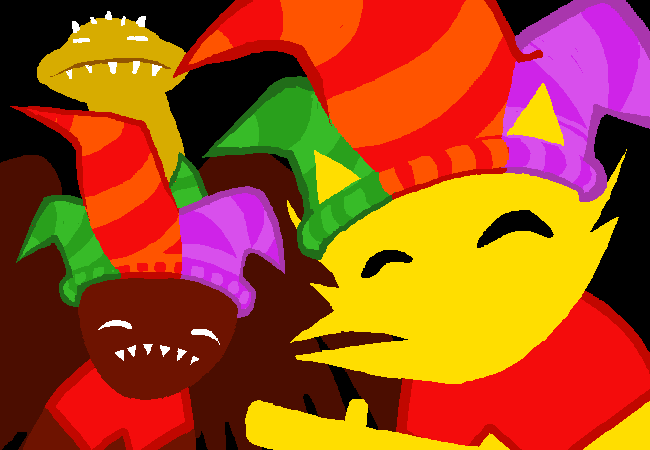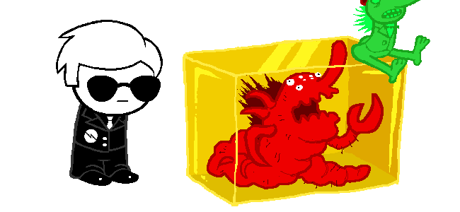 So what’s the difference by the way?? We have one monarch too. It’s Jack Noir. We can take him down easy. He is pretty weak, you know. Yeah, he can fly and has tentacles, BIG DEAL. On the power scale I would place him as…. Stronger than Dad, weaker than Davesprite??? It’s actually ridiculous how much weak he is as a final boss. Well, there is still one prototyping to go but I actually have faith in Frogsprite being a thing. Even if not, the pattern to fit is still: Doll (John), Doll (Rose), Animal (Dave), Animal (Jade). We have a vast choice with everything Grandpa has ever stuffed. And I don’t remember there being something that strong in thE TOWER HOLY FUCK THE FREAKING DENIZEN THE FREAK DENIZEN HOOOLY SHIT HOOOOOOLY SHIT. Okay, don’t panic. Okay. That would make everything 200 times harder but. It would not make the game unwinnable. They can still beat it. They can OH MY GOD THINK ABOUT POOR JADE FRESHLY ENTERED IN THE GAME HAVING TO DEAL WITH IMPS SO STRONG YEAH SHE HAS A RIFLE BUT WHAT CAN A MEASLY RIFLE DO AGAINST A TYPHEUS-POWERED ENEMY. Wait. Actually, what would ANYBODY do against a freaking Typheus-powered enemy!! And why am I worrying about Jade, she is practically the safest with Bec on her side…………….. AND NOW THAT I THINK ABOUT IT BEC IS A FREAKING ANIMAL AND PRETTY QUALIFIED TO BE A SPRITE TOO. I don’t know which one would be worse Wait WHAT AM I SAYING OF COURSE BEC IS FUCKING WORSE WE ARE FUCKED WE ARE SO FUCKED. Jade is just surrounded by things that absolutely must be kept 400 miles away from the kernel!! And you know who is up on first prototyping duty this time around??? Freaking John Egbert!!! Mr. Brightest Kid in The Incipisphere. Mr. “what is the ultimate riddle anyway? maybe i can guess, i am good at riddles!” WE. ARE. SO. FUCKED. And yes, John is not that stupid that he happily prototypes something like an omnipotent dog, but that’s beyond the point!!! Because not only if something like that happened it would be an accident, but it would result in: 1. The Ultimate Jade Harley Fuck up. 2. Making the session unwinnable by default. WHICH IS. Practically. Everything CG has been bitching about since the beginning of the times!! Why couldn’t we just have Frogsprite. Frogsprite would have been so HILARIOUS!! Haha, look! It’s a frog, but also a sprite!! Haha, frogs are relevant for reasons!!!! Haha, it’s a floating ghost amphibious!!! Hahaha, oh god why.