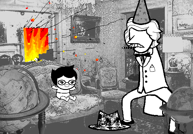 DID SHE JUST MAKE WANDS. Okay, I don’t get the point of having roles assigned by Sburb if the kids are going to fucking ignore them and do as they please. The game is self-aware. It knows what’s best from them and what they are supposed to become. She wants to be a witch??? So be it, see if I care!! Next on John will master the art of time travel and Dave will….. Dave will do whatever an Heir of Breath is supposed to do. Handing out fresh mints to everyone, I’d guess. A noble mission nonetheless.